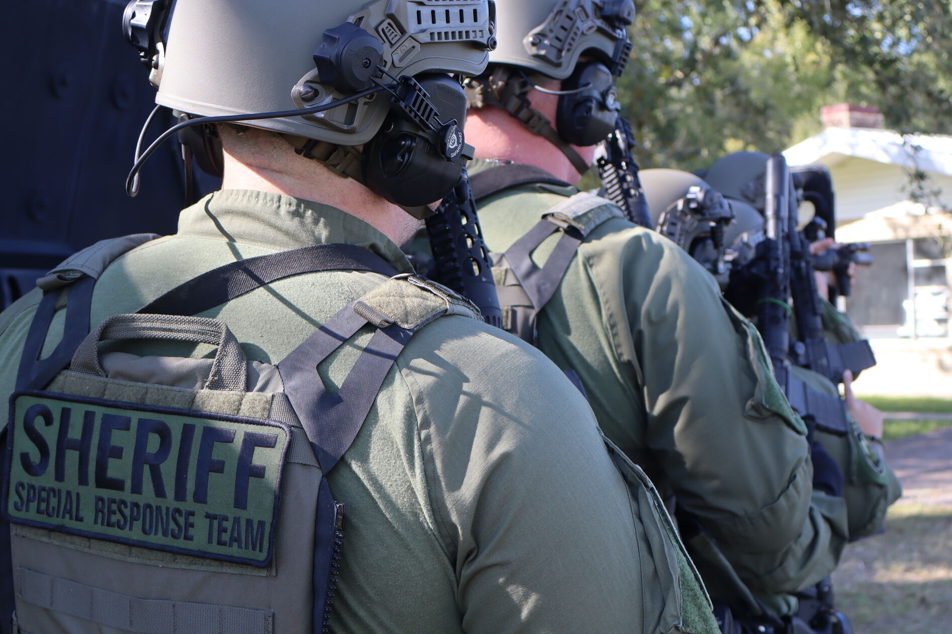 The Tangipahoa Parish Sheriff’s Office Special Response Team (SRT) operates around the clock, responding to critical incidents including barricaded suspects, hostage crises, active shooter situations, and riot control. SRT also supports other divisions by being present during arrests and search warrant operations in high-risk and hazardous situations to minimize escalation and contain potential threats.