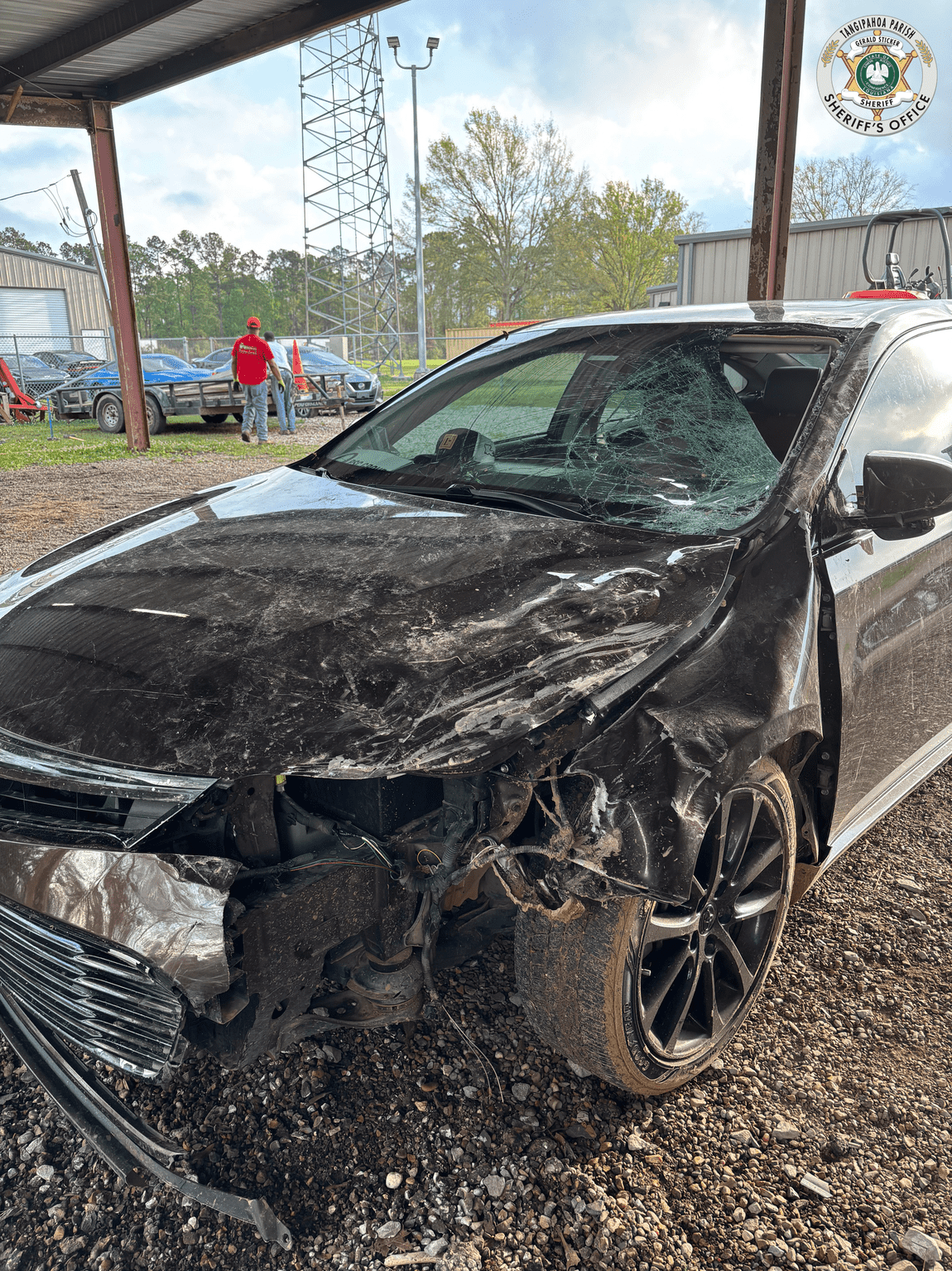 Following information about the case being shared with the public on Tuesday, March 10, the suspect, Warren Seither, 33 of Hammond, contacted TPSO to turn himself in. During the arrest, detectives located Seither’s dark purple Toyota Avalon with extreme damage, including a completely busted windshield and half of the front, driver’s side bumper and grill missing (pictured below).