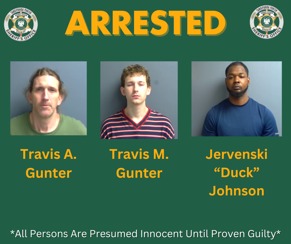 ROSELAND (March 26, 2026)- The Tangipahoa Parish Sheriff’s Office (TPSO) has arrested a father and son, as well as a convicted felon, and discovered multiple illegal drugs in a narcotics operation investigation.